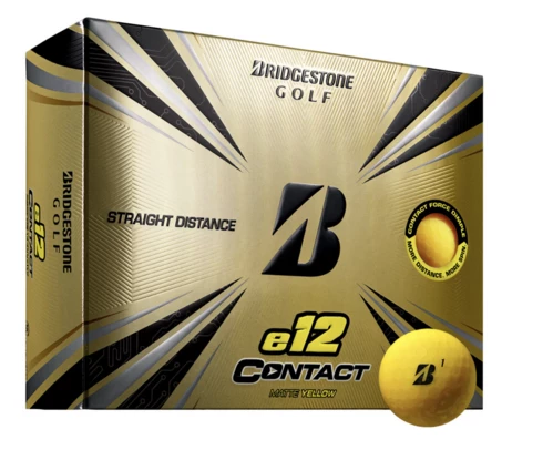 The new Bridgestone e12 CONTACT is straight distance you can see! The true game-changer is a new CONTACT Force dimple, which features a unique structure with a raised area in the center and an outer portion that slows horizontal rotation during flight. The raised area allows for 38% more contact with the clubface at impact than traditional dimples, yielding a much more efficient transfer of energy and improved core activation. The result is faster ball speed and straight distance with every club in the bag. Available in white, matte green, matte red, and matte yellow colors.