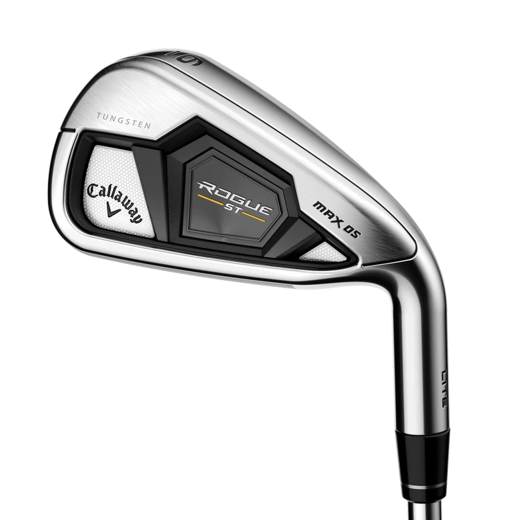 Rogue ST MAX OS Lite irons have a refined game-improvement shaping, with high launch, wide soles, and enhanced offset. The Lite version features more loft, lighter shafts and lighter swingweights to make these our highest launching, easiest to swing Rogue ST model.
